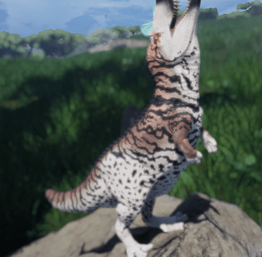 Conflicting Relationship (optional): Ceratosaurus and Allosaurus actively dislike each other and it is common to see them target Allosaurus once spotted. They may go out of their way to challenge them off of successful kills or challenge them for an area